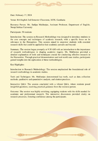 of research methodologies in shaping academic inquiry. Ms. Mukherjee provided a
